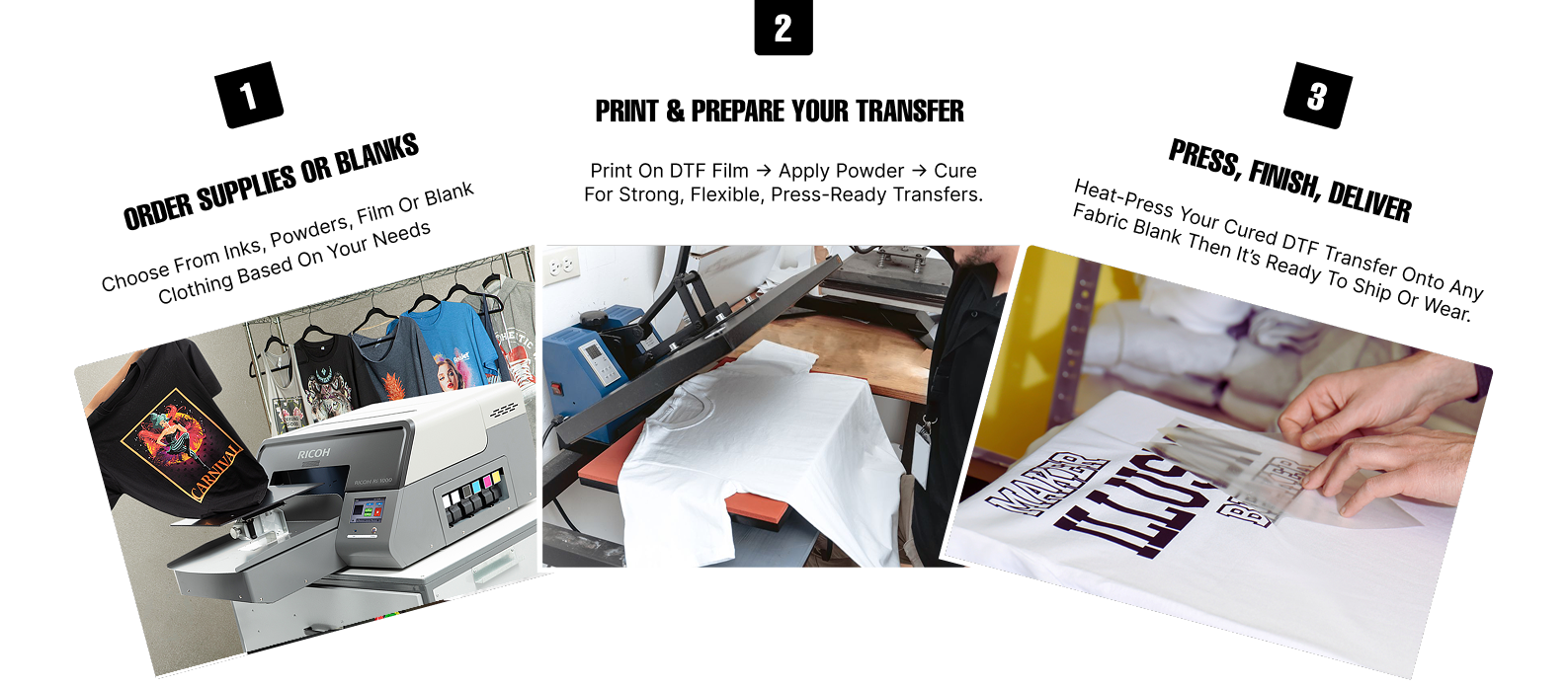 From inks to apparel blanks, everything I need is in one place. The workflow is simple, and the results are professional every time
