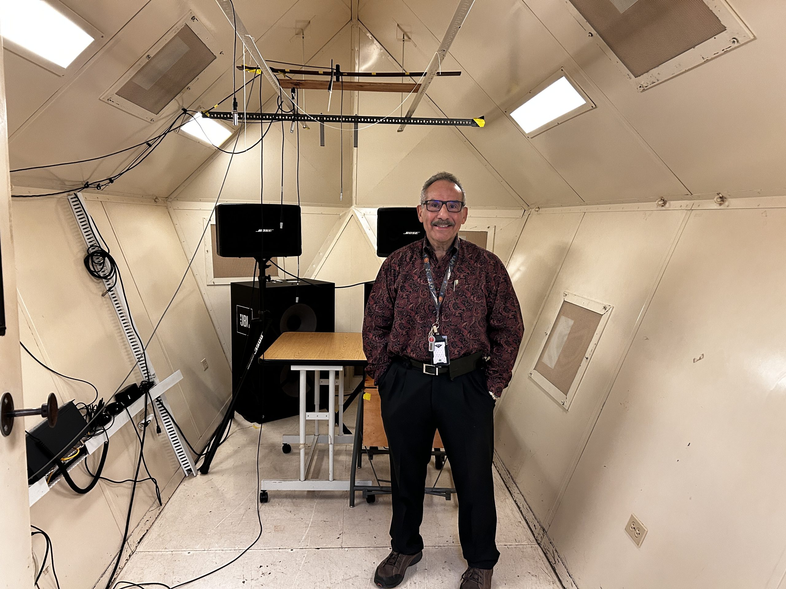 Inside the Johnson Space Center Avionics Systems Division Reverberation Chamber.