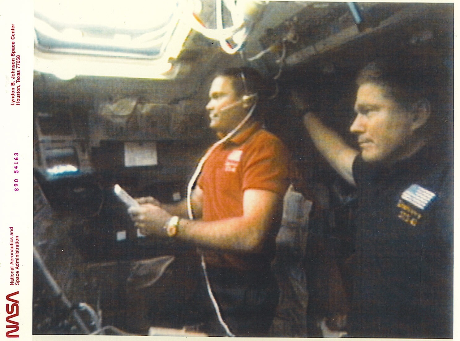 Astronaut Bruce Melnick using the Voice Command System that I was the project manager for. Standing next to him is Bill Shepherd, who also used the system.