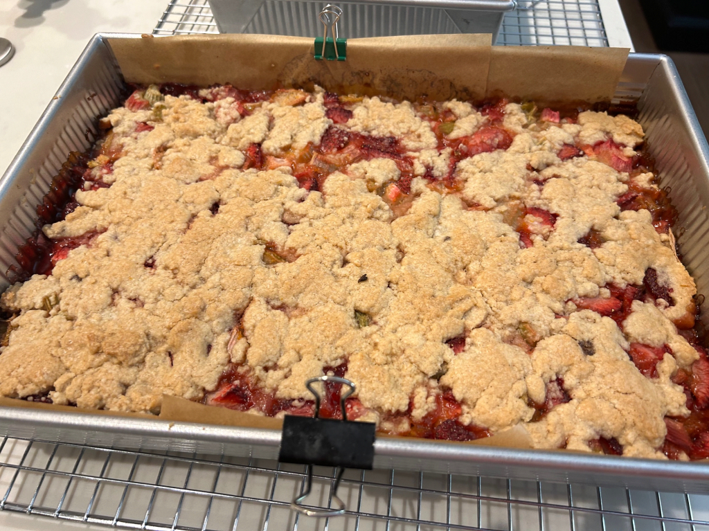 ⦁ Bake for 35–40 minutes or until the topping is golden brown and the berries are bubbling at the edges.