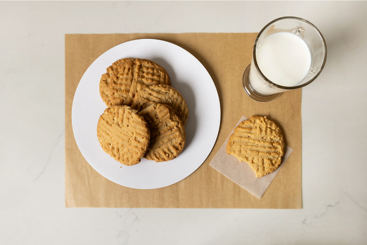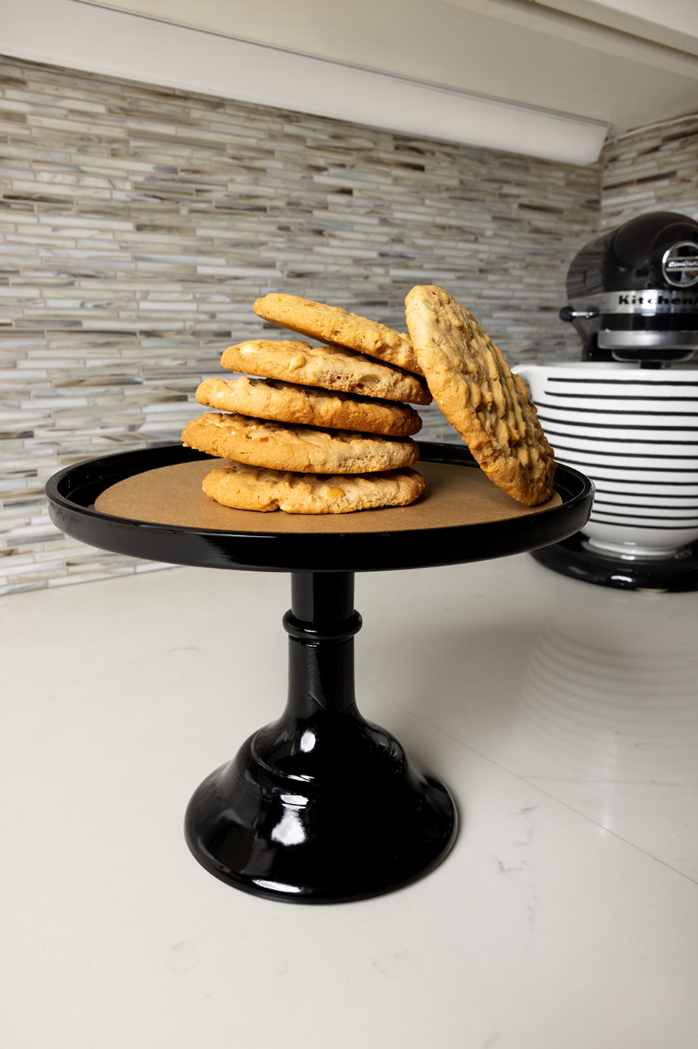 This Peanut Butter Cookie has two words associated with it, buttery sweet. It’s crisp around the edges and chewy in the centre. Made with extra crunchy peanut butter and lightly salted dry roasted peanuts, it delivers the nuttiness it deserves without compromising flavour or texture. A combination of granulated sugar and light brown sugar adds that signature molasses warmth. Finished with the classic crosshatch pattern, it’s a nostalgic treat done right.