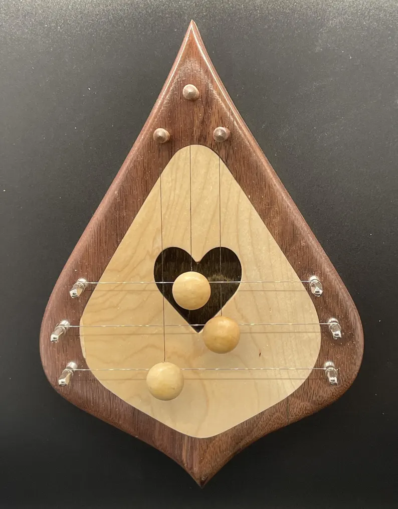 3 String door harp with solid Walnut border and simple Maple inlay with a Heart shaped sound hole.
