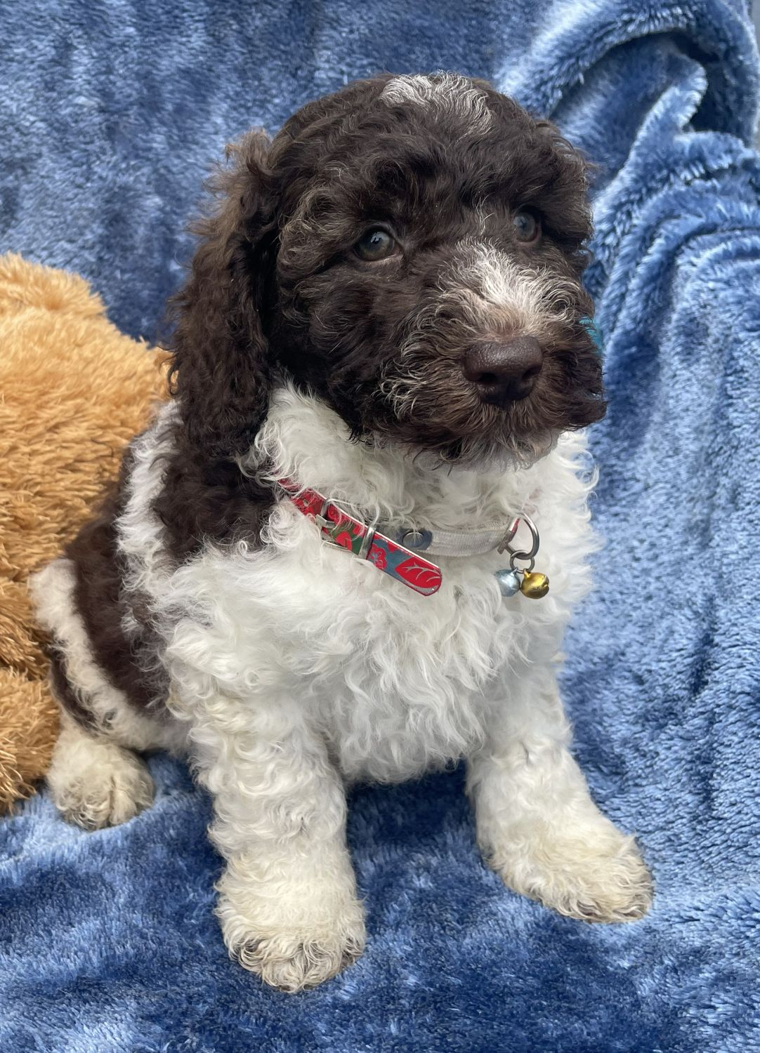 Chocolate parti Spoodle male Chip: 956000017401361 Vet checked, Micro chipped, Vaccinated, Wormed. Ready for his new home 10.12.25