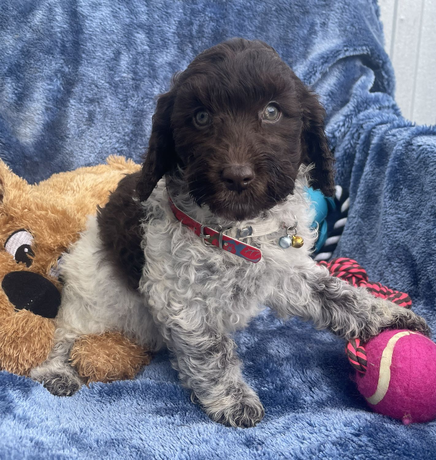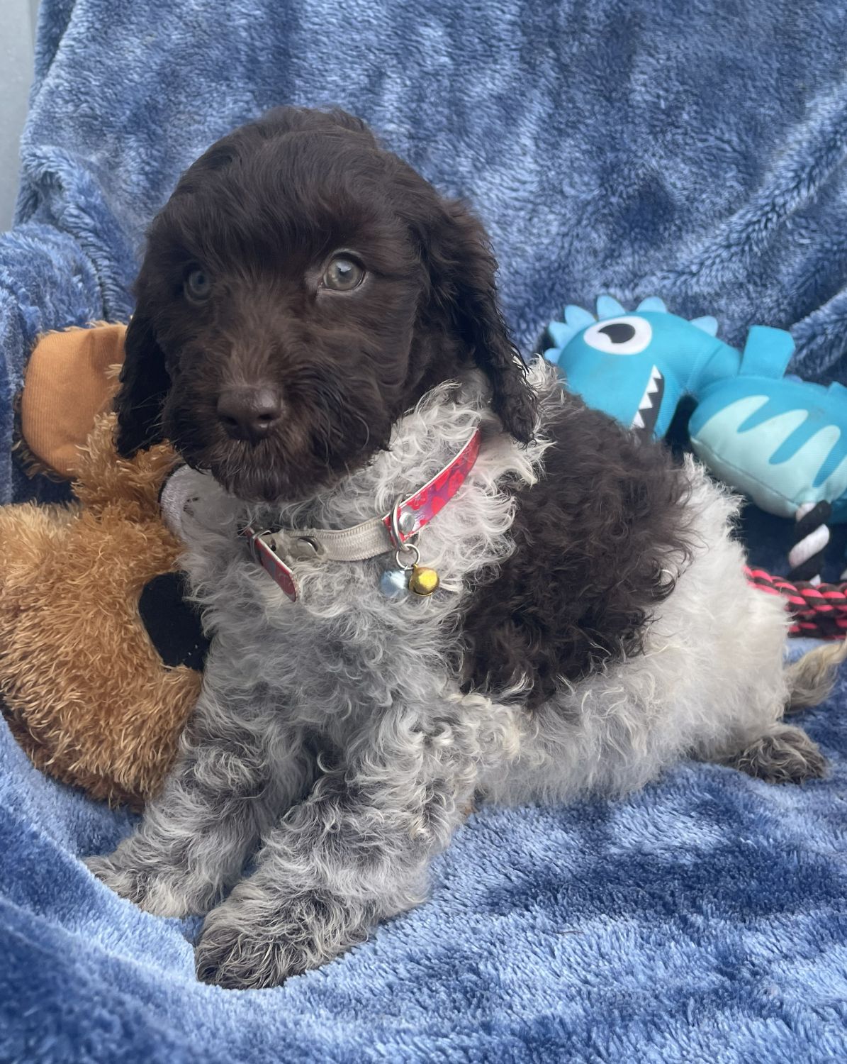Chocolate parti Spoodle female Chip: 956000017351139 Vet checked, Micro chipped, Vaccinated, Wormed. Ready for his new home 10.12.25