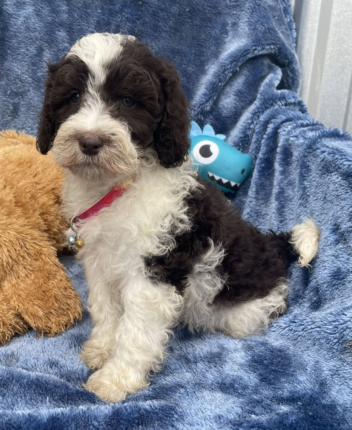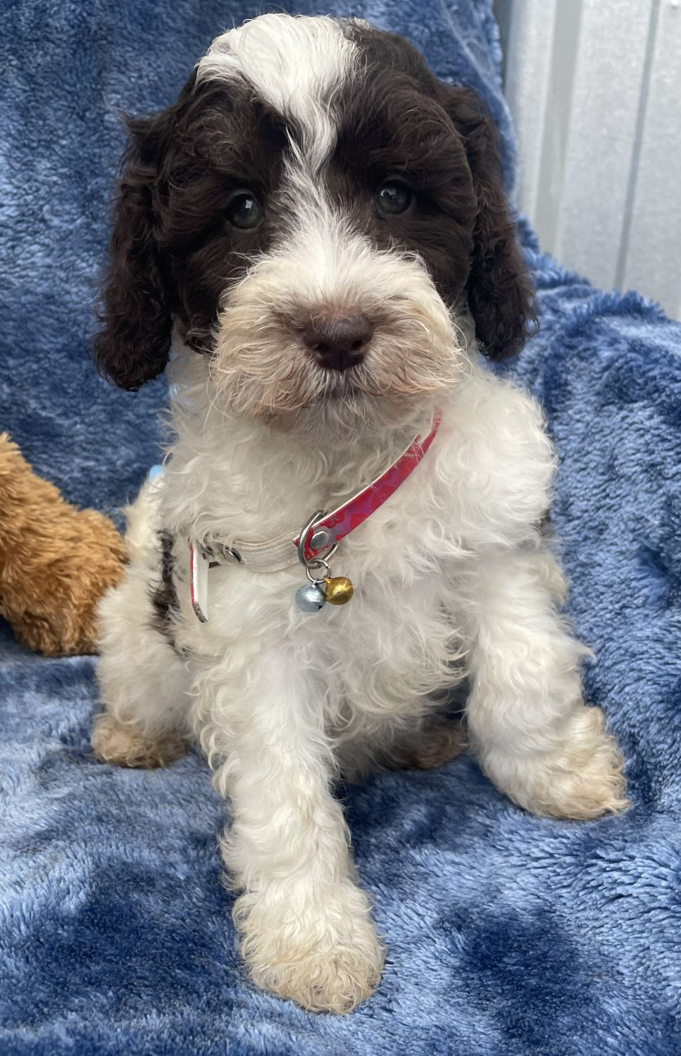 Chocolate parti Spoodle male Chip: 956000017400990 Vet checked, Micro chipped, Vaccinated, Wormed. Ready for his new home 10.12.25